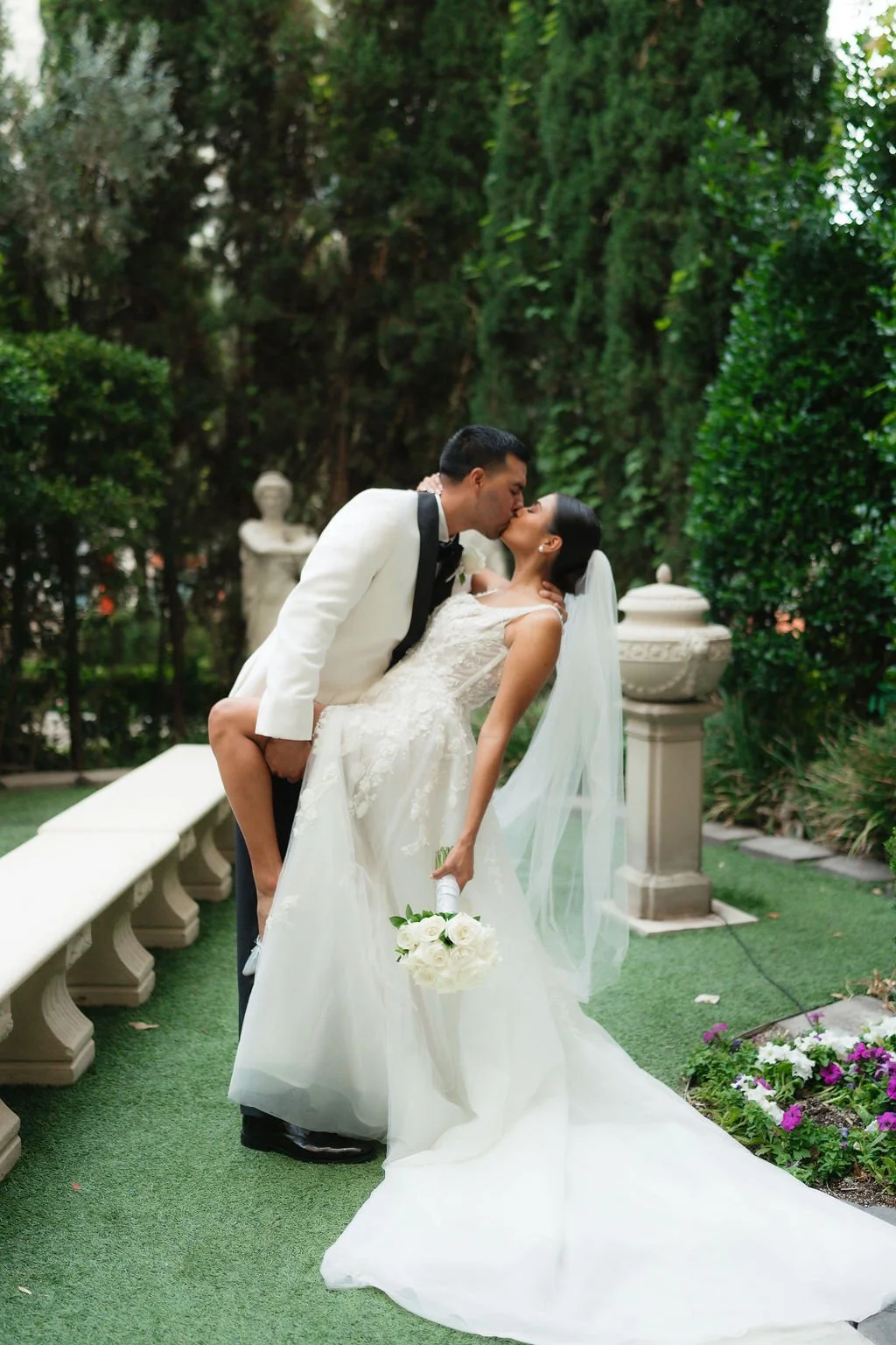 Alyssa and Chris got married in Las Vegas, Nevada, exchanging vows at the stunning Caesar’s Palace Venus Gardens, a venue full of history, romance, and timeless beauty. Surrounded by stone pillars and overtaken vines, it was the perfect backdrop for a wedding in Vegas. Every moment was intentional and deeply personal, a quiet celebration of love, in one of the most exciting places in the world.