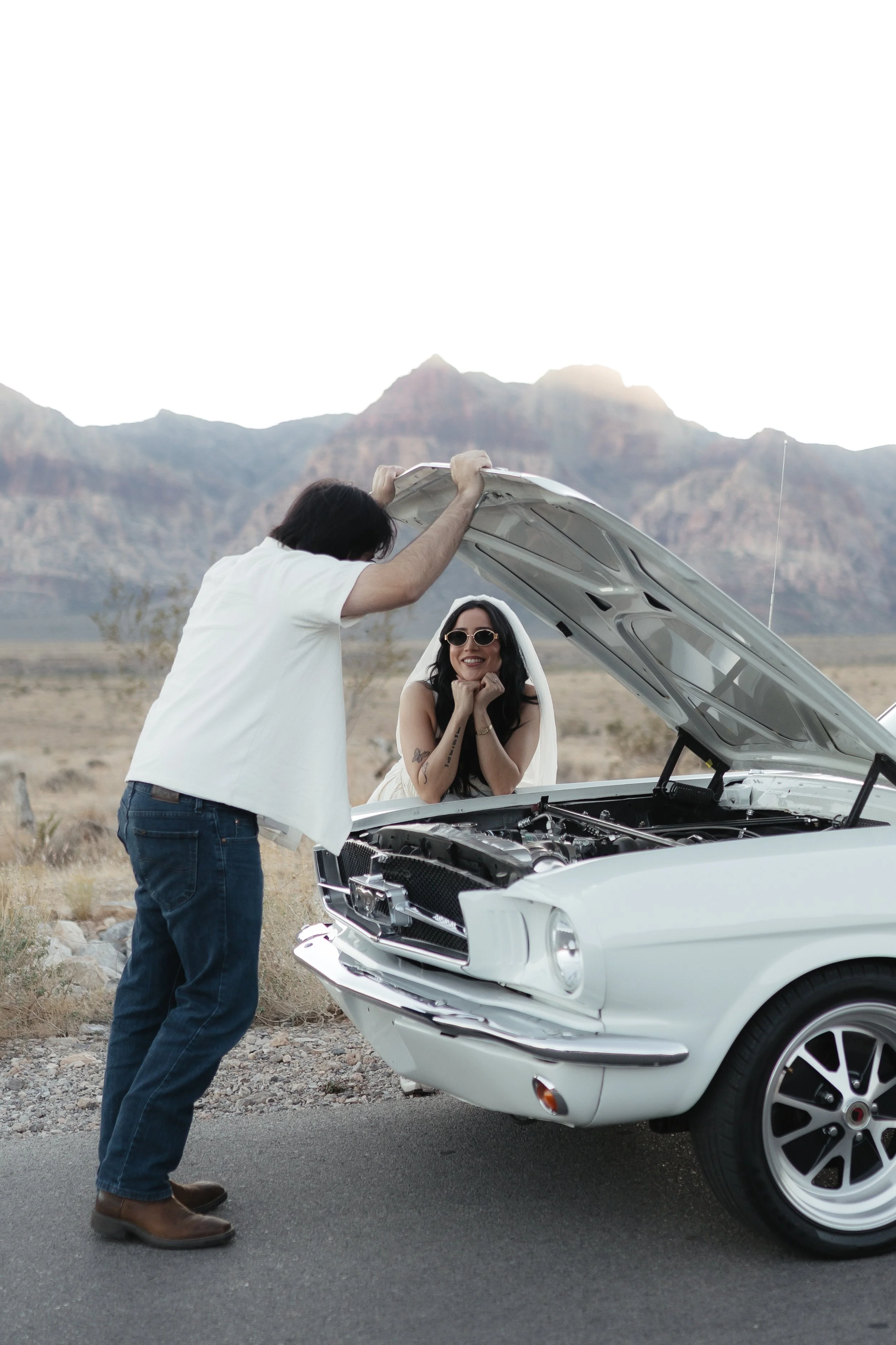 Devine and Andre met me at Red Rock Canyon in Las Vegas, Nevada for a couples photoshoot focused on capturing natural, candid moments together. The session took place just before sunset and was photographed on location within the canyon.