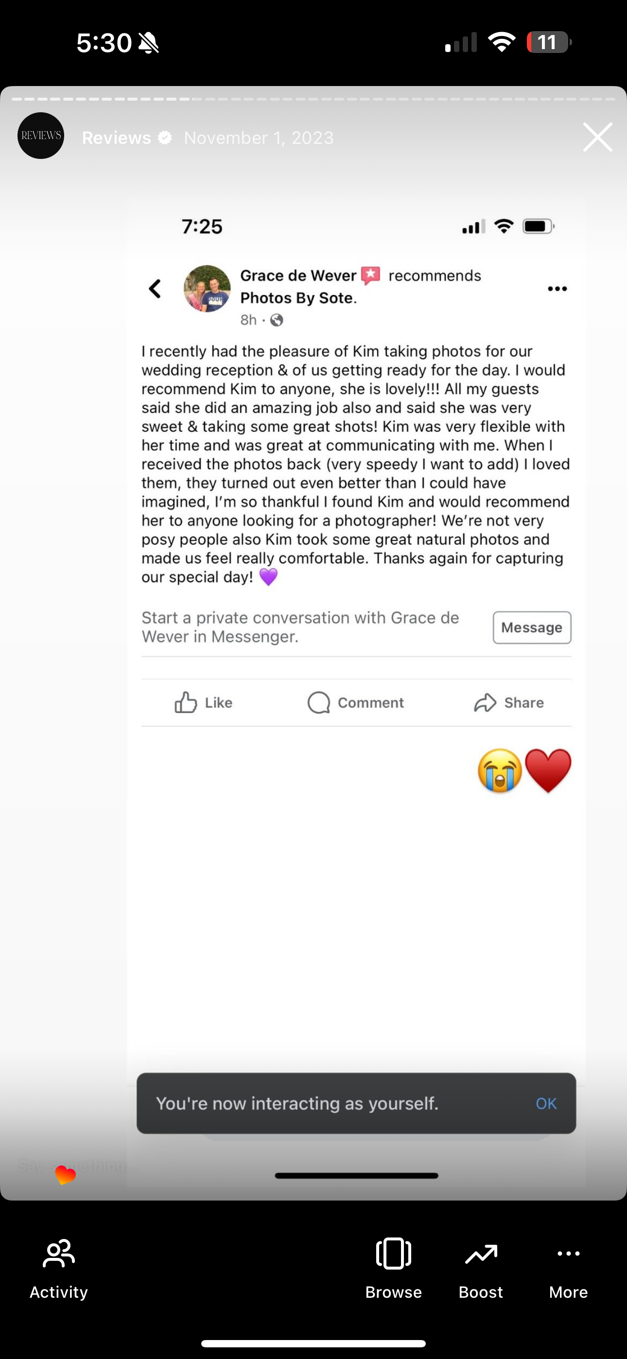 As a vendors perspective.. Kim was so kind and good at thinking outside the box. Even when expecting a little one soon she offered to lend me a hand with anything I may have needed when I was in a pinch. That was huge and so rare to find in a vendor! Forever my friend this one!!! Hope to get bookings together again soon!!!! Take care and BEST wishes in your business journey!!