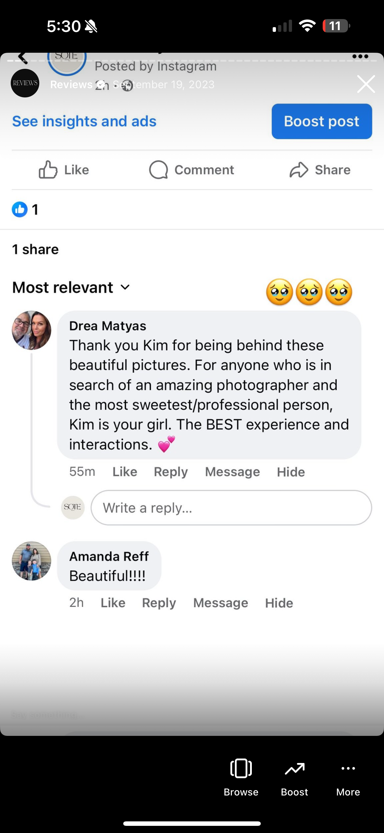 Kim was SOOO helpful! She did more for me than expected! She is an amazing photographer and person! I only have my sneak peaks right now and they’re so good that I am EXTRA excited for my full album!