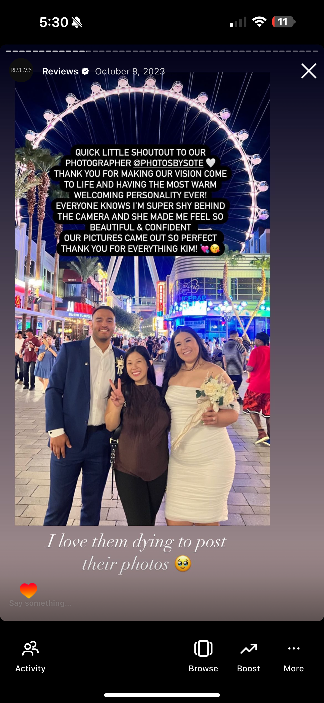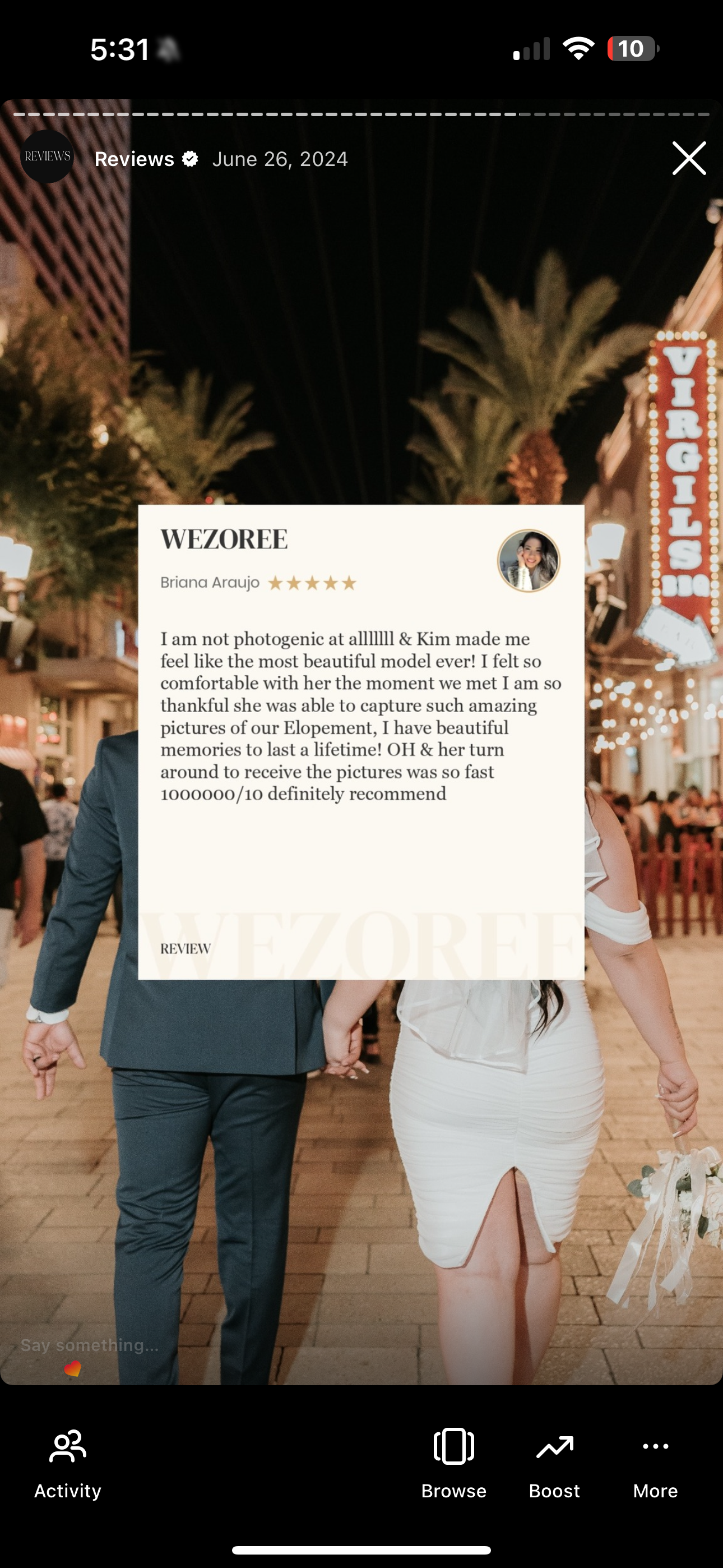 Kim was an actual dream, she was so friendly and made us feel so comfortable. For someone who isn’t photogenic in the slightest she made me feel like a complete natural. We eloped from the UK however the communication on the lead up to us traveling out to Vegas was amazing, any questions I had were answered instantly. Cannot recommend Kim enough📸✨ -
