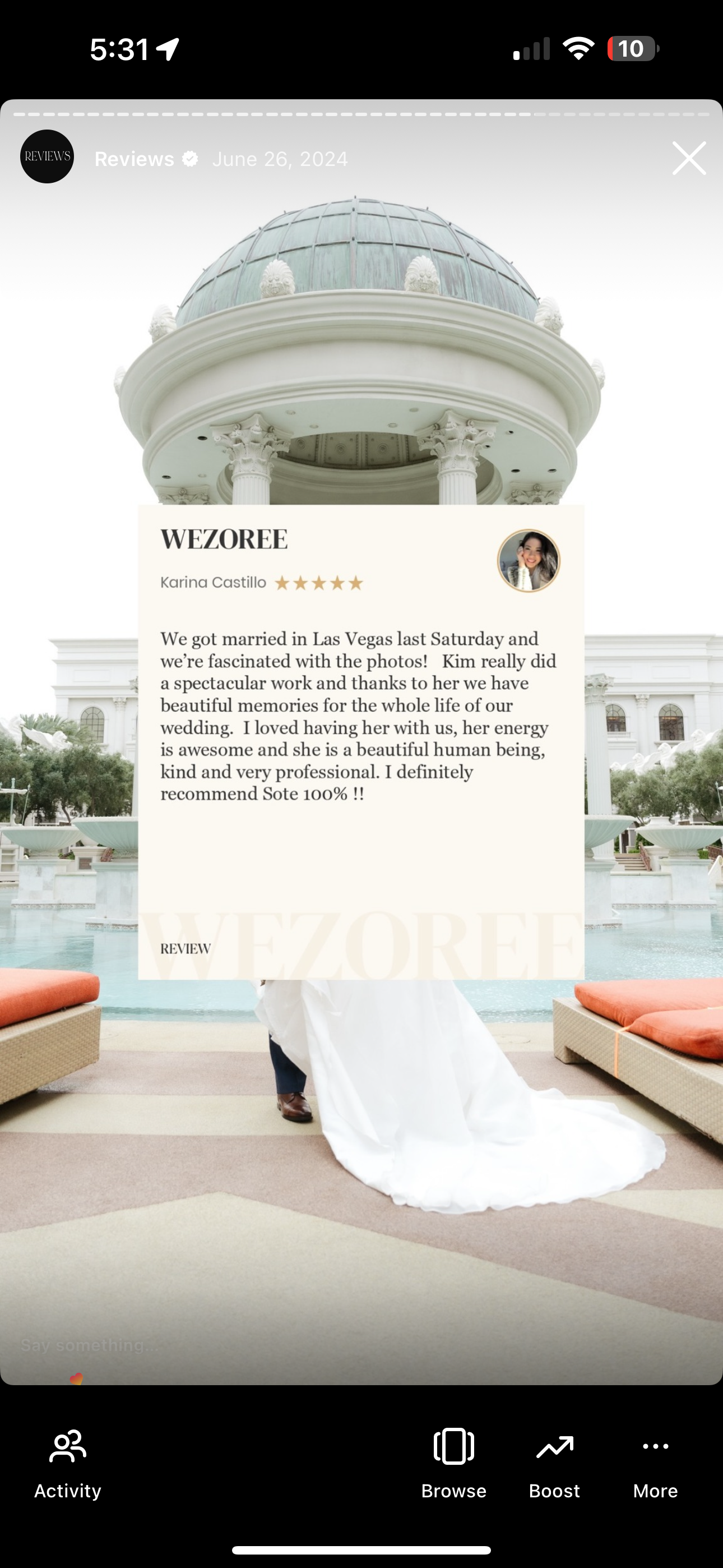 Kim is very detailed oriented and professional. She is a fantastic person as well. Her work reflects her passion for her business. She advocated for us and took beautiful photos for our wedding at Caesar’s palace. She was a total pro. If you’re considering Kim, reach out! You wont regret it.